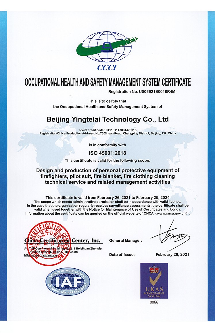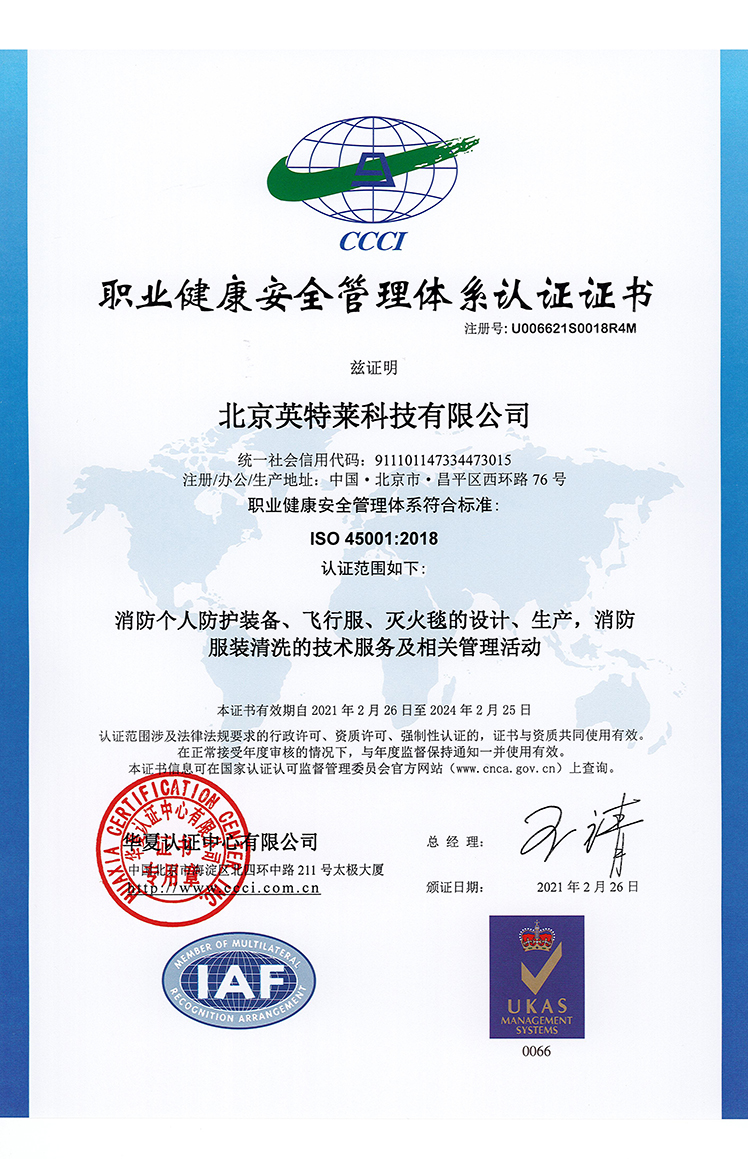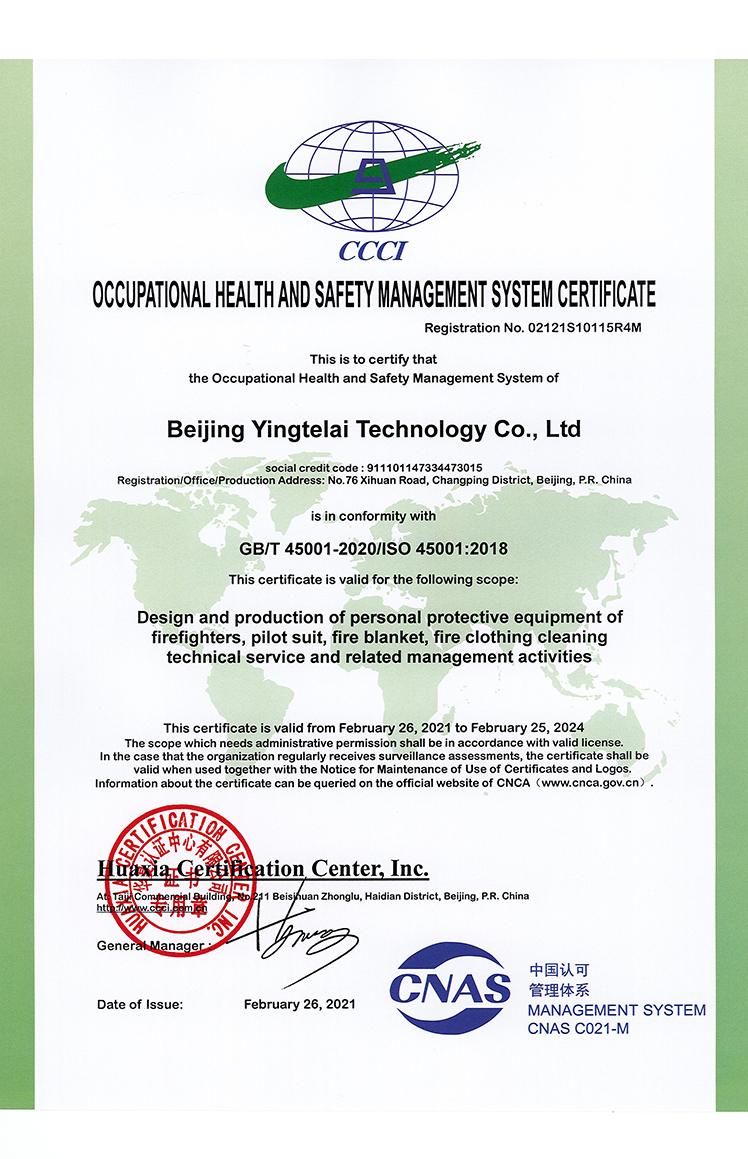 OCCUPATIONAL HEALTH AND SAFETY MANAGEMENT SYSTEM CERTIFICATE-CHINESE